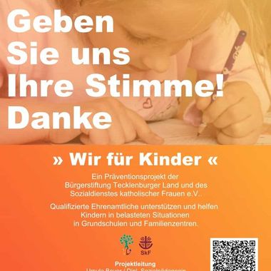 Jetzt abstimmen! Das Projekt "Wir für Kinder" ist Präventionsprojekt der Bürgerstiftung Tecklenburger Land und des Sozialdienstes katholischer Frauen.…